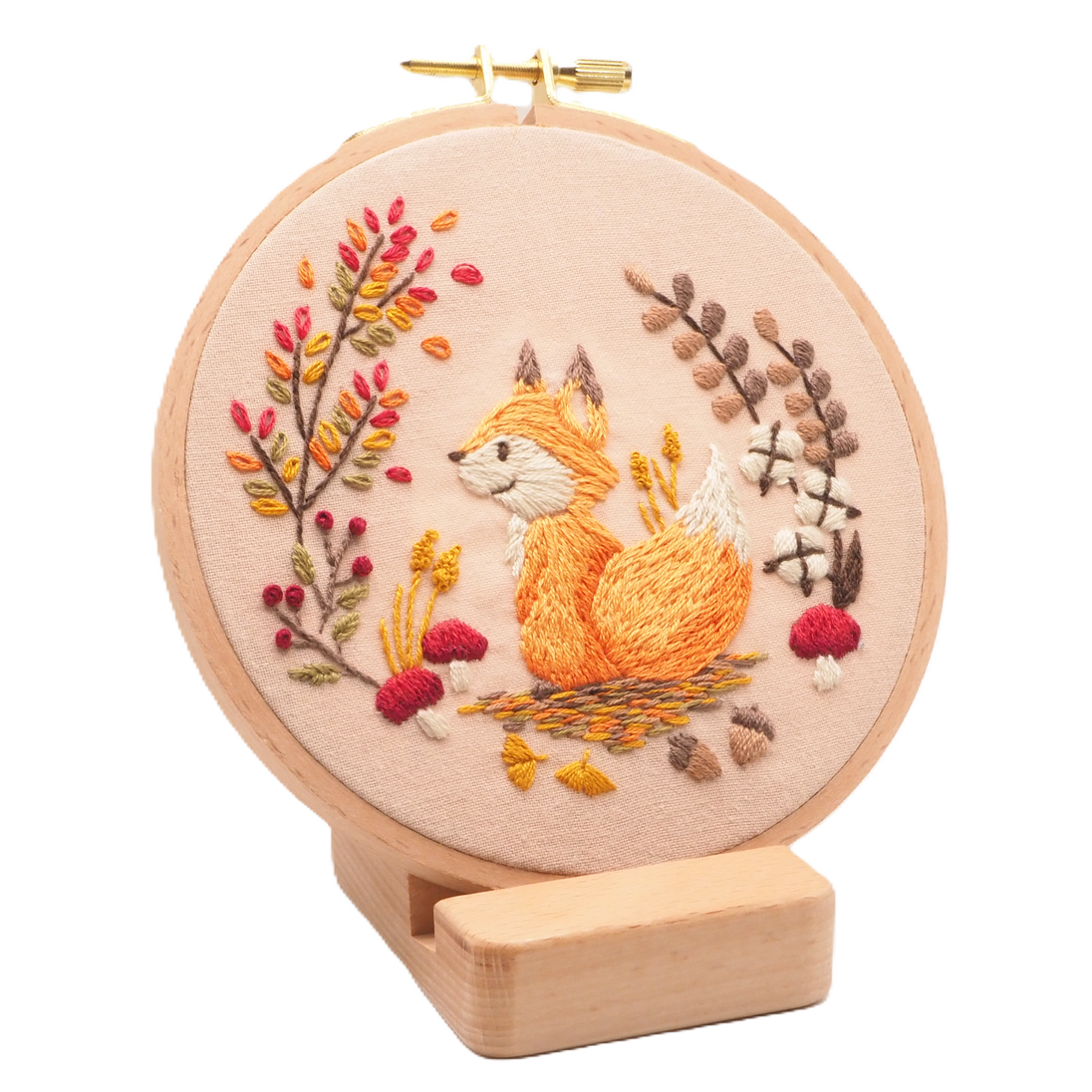 A cute fox embroidery kit is perfect for fall. This kit is beginner friendly.
