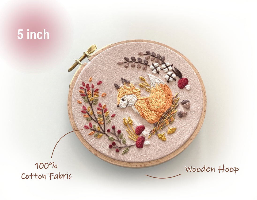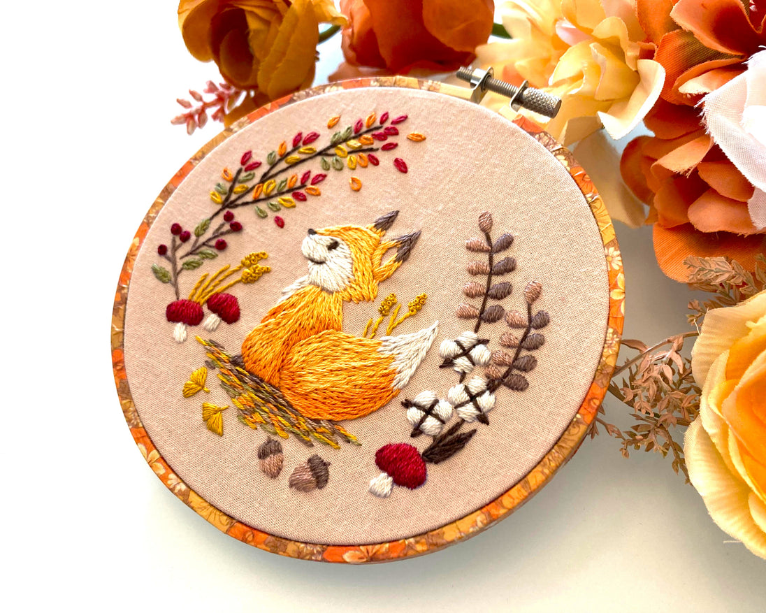 This Autumn Fox embroidery pattern is designed for a 5" hoop.