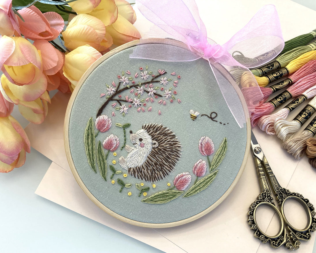 A cute hedgehog embroidery kit is perfect for spring. This is an intermediate level kit.