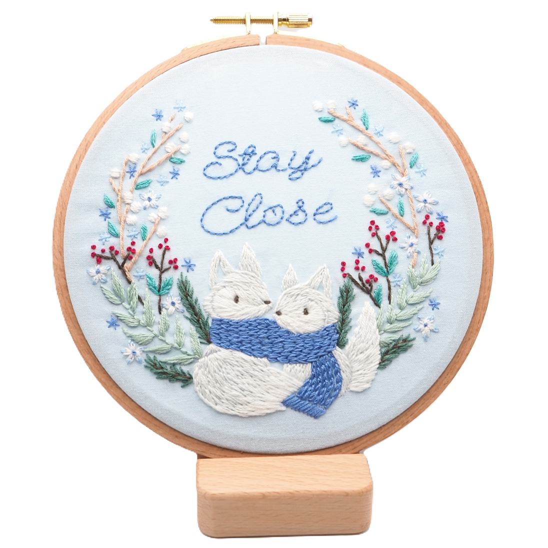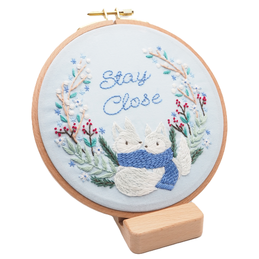 Two cute foxes embroidery kit is perfect for winter. This kit is beginner friendly.
