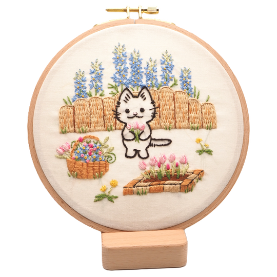 DIY Embroidery Kit 'Spring Garden'.A perfect spring kit that highlights the warm and colorful time of year.Little kitty is gardening in his back yard. Tulips, dandelions and delphiniums are in this design. This is an upper-intermediate...Regular price From $29.00Quick view