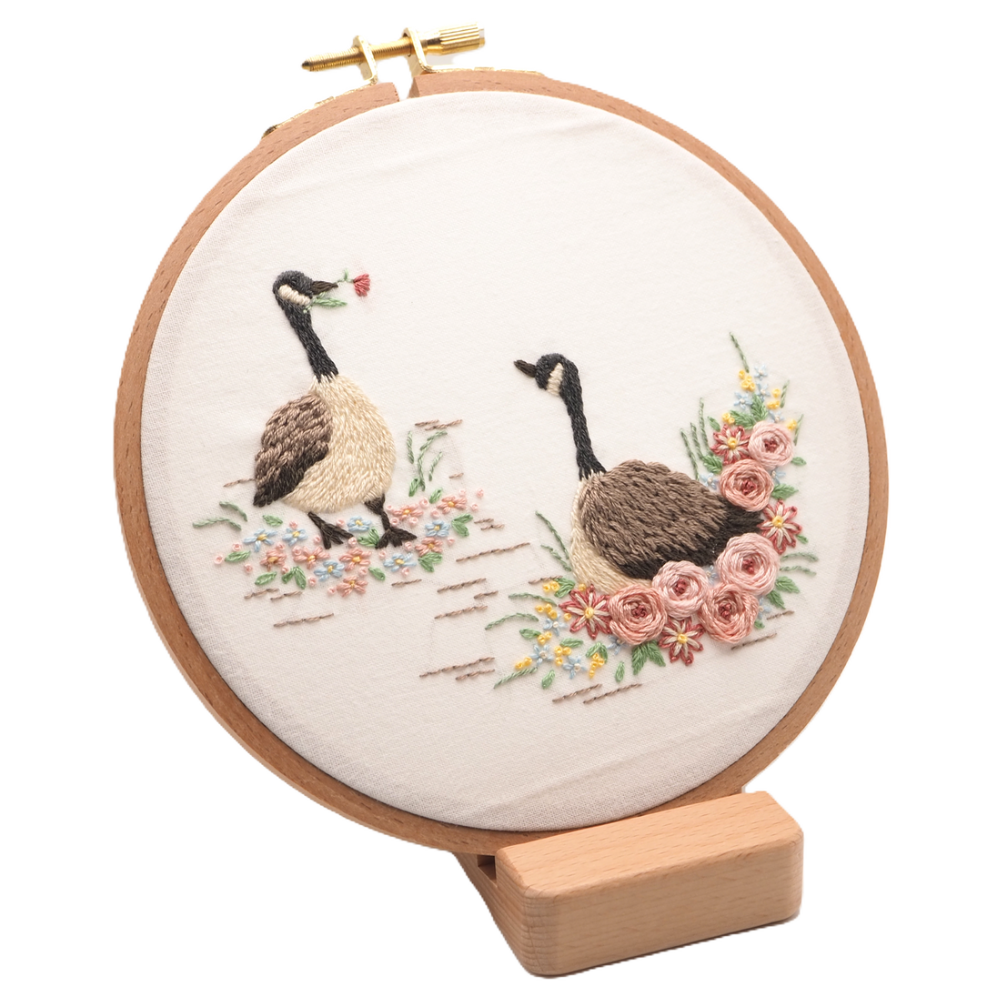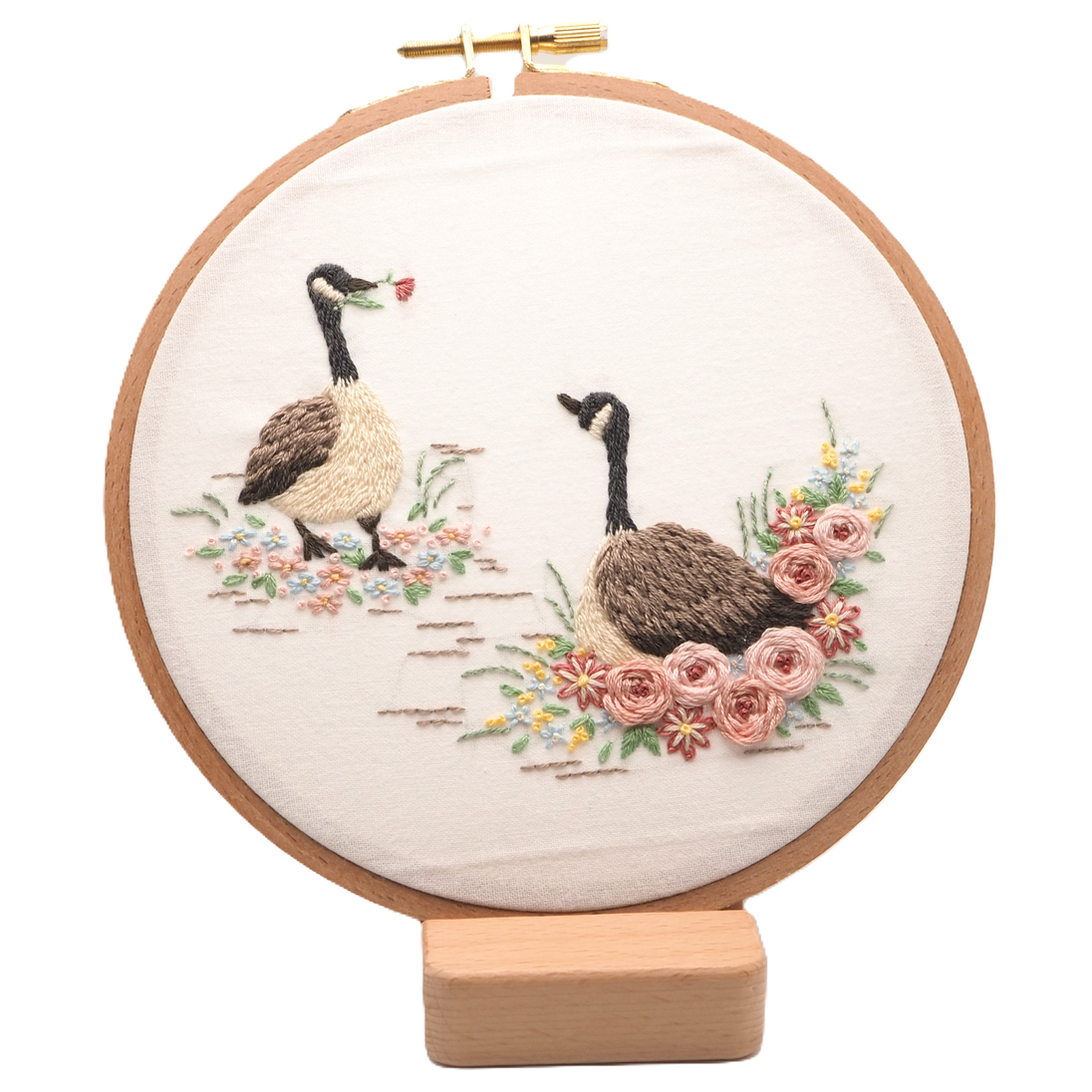 A nice goose brings it's partner a flower while nesting. This kit is beginner friendly.