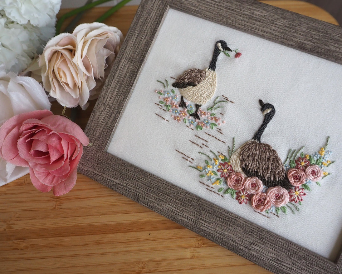 DIY Embroidery Kit 'Goose Couple'.