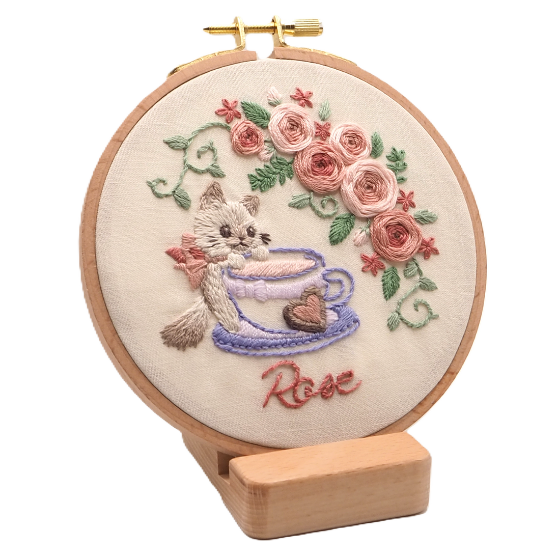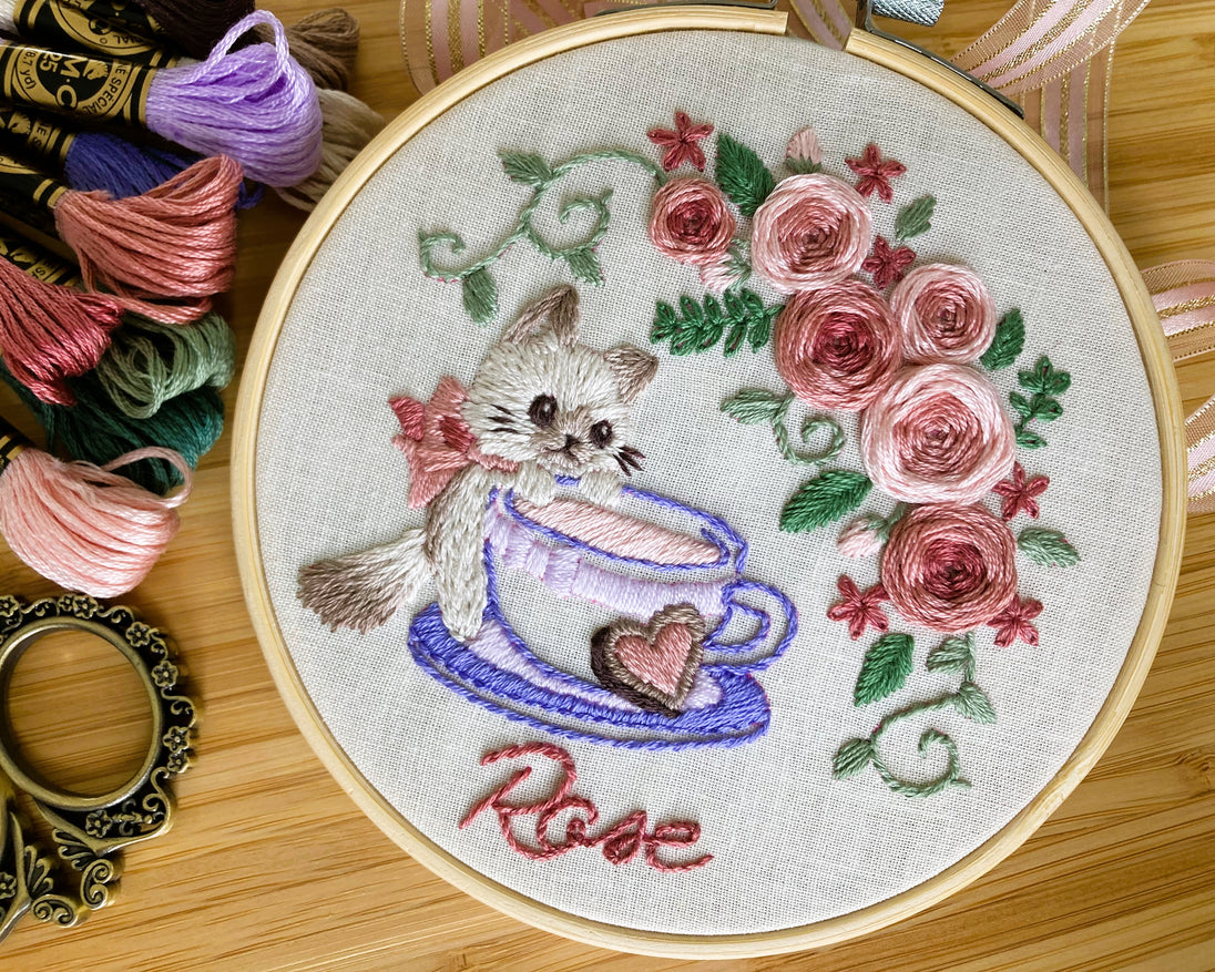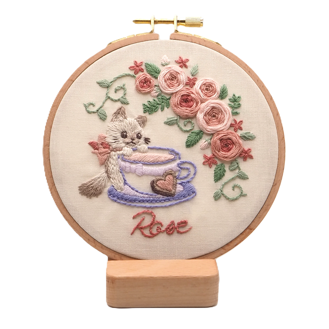 DIY Embroidery Kit 'Rose Tea' is part of the 'Tea Time & Cat' series of designs.