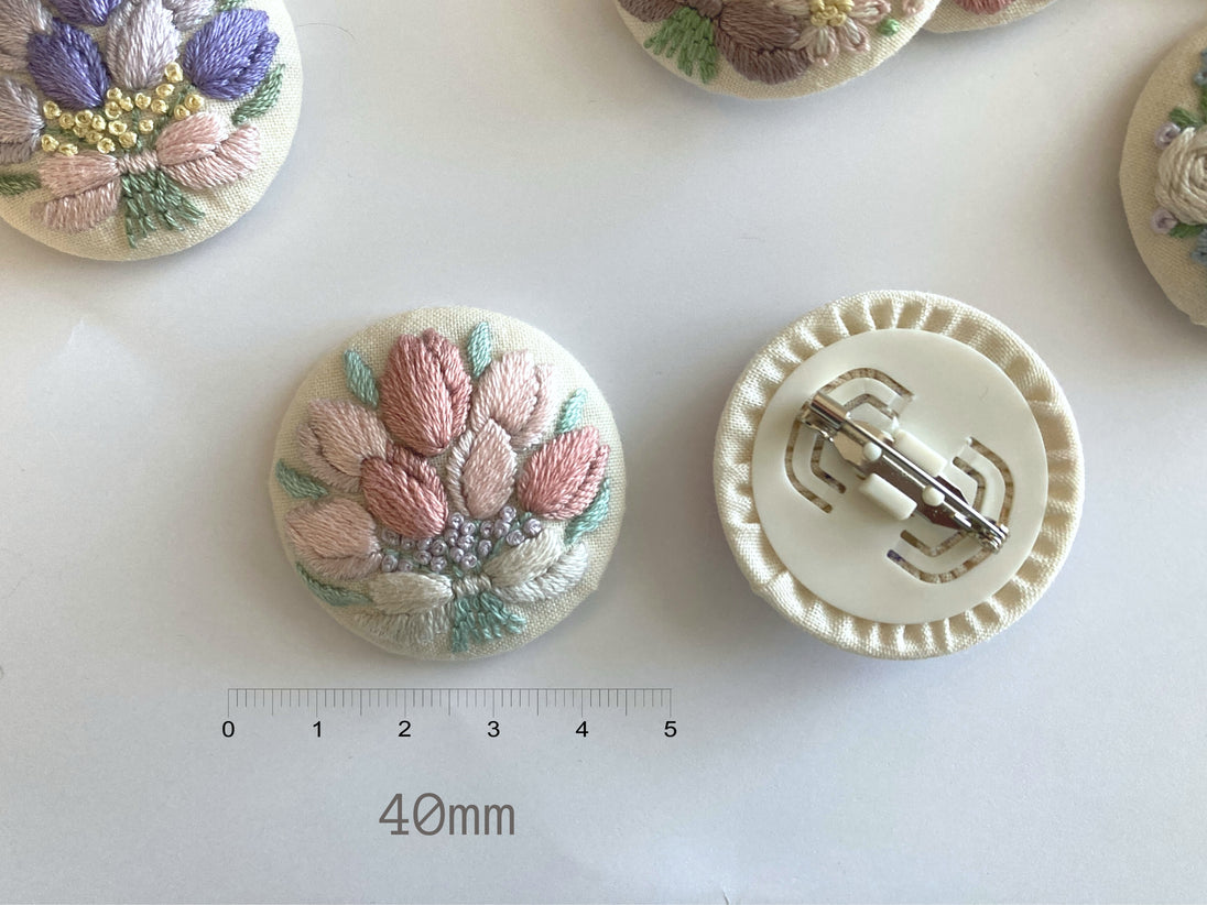 You can make three 40mm (1.57 inch) size covered button pin brooches all by yourself.