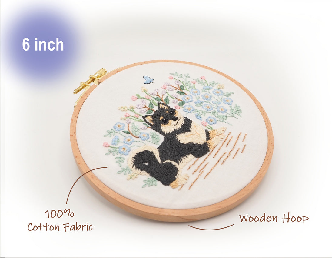 This Black Shiba Dog embroidery pattern is designed for a 6" hoop.
