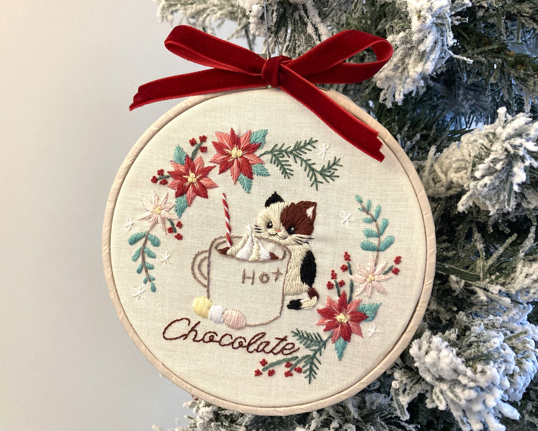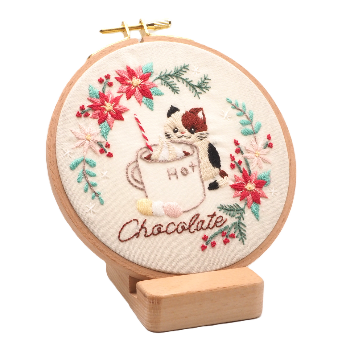 DIY Embroidery Kit 'Hot Chocolate' is part of the 'Tea Time & Cat' seasonal series of designs.