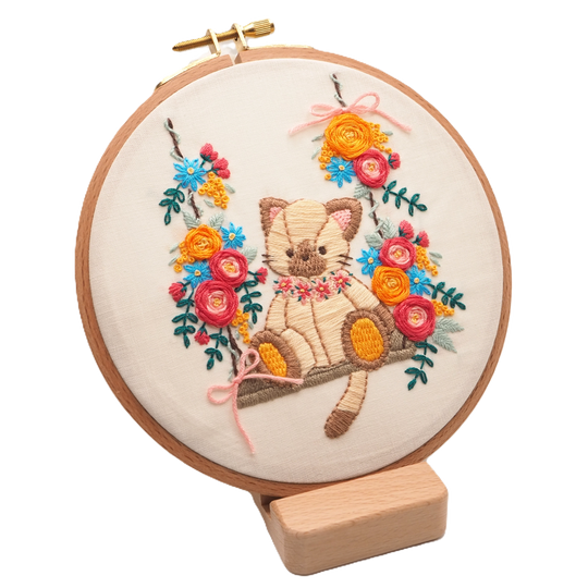 De mignons petits lapins ronds entourés d'un assortiment de fleurs. Ce kit est adapté aux débutants supérieurs.