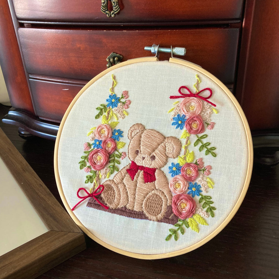 Le kit de broderie DIY « Ours en peluche » fait partie de la série de designs « Balançoire et peluche ».